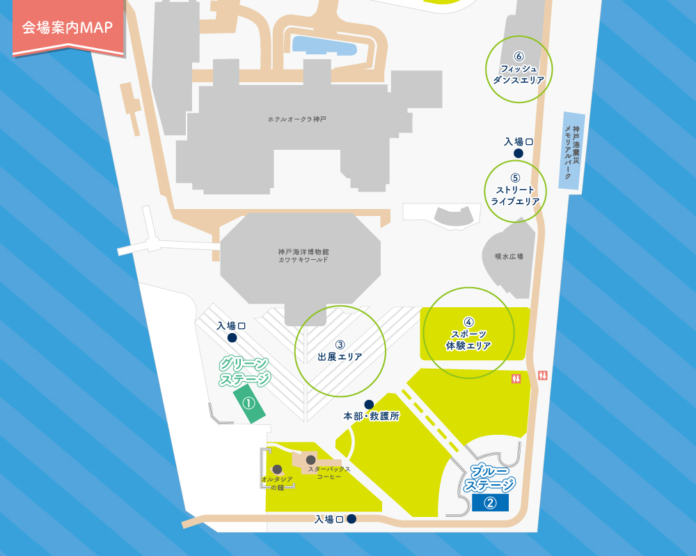 サンテレビジョンのYouTubeチャンネルにて、当日メリケンパーク会場から生配信します。(14日のみ2時間程度を予定)