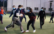 歩きながら後ろ左右自由にパスを通しトライを狙います。トライ後、喜ばなければトライが認められません。